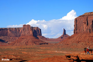 Kdo chce, může si park projet a nafotit z koňského hřbetu. My z nedostatku času, z respektu k indiánským koním a taky z lásky k našim fotoaparátům tuto příležitost raději nechali jiným odvážlivcům a na zastávce u koňské „farmy“ jsme si pouze vyfotili skály v dáli. Právě z tohoto místa totiž pochází jedna z reklam na Marlboro. Dokonce i toho koně po chvíli přivedli a my si to nafotili kompletní. Poté jsme vyrazili dál.