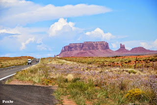 Kolem této scénické silnice se tyčí různá skaliska, které se objevují téměř na rovině. Rovina, rovina a najednou do toho vysoká skála. A to všechno kolem jedné rovné asfaltové silnice s typickou žlutou dělicí čárou. Nedlouho na to jsme se dostali na silnici, jež se objevuje v opravdu mnoha filmech a seriálech. Je to typický pohled na tuhle oblast, kterou filmaři mají moc rádi. Teď z hlavy mi napadá Forrest Gump a můj oblíbený Doctor Who (první epizoda šesté série). A ne, tu fotku odsud prostě z nějakého důvodu nemám. -,-