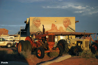 Samozřejmě jsme se i my museli tady na té kovové destičce nejdřív rozplácnout, jak široký, tak dlouhý, aby každá naše končetina byla v jiném státě. Nebylo tu jinak v podstatě nic víc, ale ta jediná kovová destička za vidění a pocit zkrátka stojí. Bylo kolem poledne, takže teplota se pohybovala vysoko, ale i přesto jsem ještě asi dvakrát prošel kolem všech těch stánků (čímž jsem prošel dvakrát cípy všech čtyř států), abych si koupil náramek a suvenýry pro těch pár vyvolených, co zůstali doma. Nakonec jsme se vypravili dál do Arizony. Ještě jsme měli dál nějaký program, a to konkrétně Monument Valley.