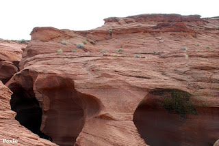 Nicméně některé informace jsem se nakonec dozvěděl. Průvodkyně za nás nese zodpovědnost, takže jí máme hlásit, pokud by se nám dole udělalo špatně. Další věc byla taková optimistická – v této oblasti se občas, zvlášť v létě vyskytují bleskové záplavy. Voda přichází od nedalekého mostu a spláchne celý kaňon. V srpnu 1997 také přišla a celá jedenáctičlenná výprava utonula. Tehdy to přežil pouze průvodce, který kaňon znal a věděl, kde se chytit. To je částečně asi také důvod, proč turisti Nižší Antilopí kaňon vyhledávají o něco méně.