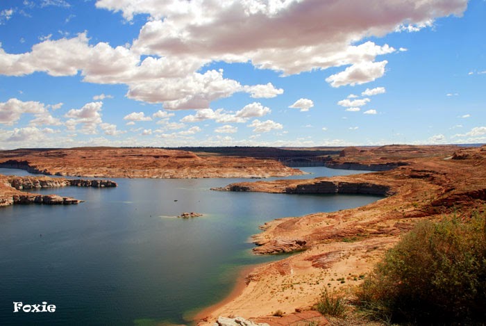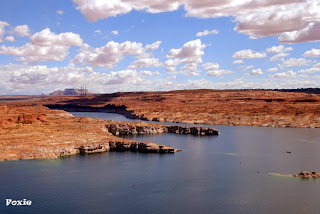 Projeli jsme Page a vjeli ještě do Glen Canyon Recreation Area, ve které se nachází Lake Powell. Druhá největší umělá nádrž v USA vznikla zatopením okolních kaňonů při stavbě přehrady Glen Dam v roce 1963. Pobřeží lemují četné kaňony a rudé skály, které ztěžují a mnohdy zcela znepřístupňují vodní hladinu ze břehu. Délka jezera je necelých 300 km a jeho určitou tajemnost vytváří barva vody, jež se mění v závislosti na denní době od zelené, přes azurově modrou až po černou.