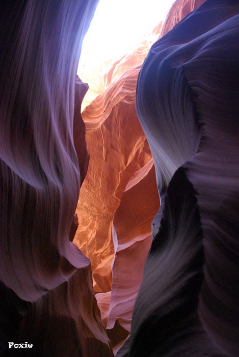 Nemám odhad na velikosti a vzdálenosti, proto opravdu nevím, jak hluboký kaňon je, navíc se to místy mění, Lower Antelope Canyon je o něco mělčí a svažuje se do tvaru „V“. Nejlepší osvětlení je tu v časných ranních hodinách a pozdě odpoledne. Velkou část cesty se jde v docela těsném prostoru (1-3 metry), nic pro osobu s klaustrofobií. V Upper je nejlepší světlo kolem poledne.