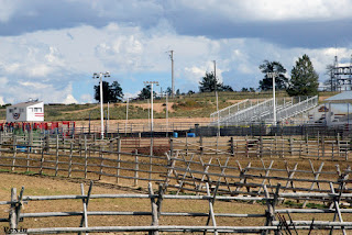 Jen kousek od Dixie je Bryce Canyon City, které jsme jen projeli a mohli si z okna prohlédnout arénu na rodeo, které se ve městě podle cedule jezdí od dubna do srpna. Minuli jsme také místní letiště a vjeli do dalšího národního parku toho dne. Téměř hned za branou nás uvítal pohled na několik jedinců jelence ušatého (anebo taky něčeho jiného), které naše přítomnost nijak nezajímala, i když jsme se snažili vyluzovat různé skřeky v marné snaze je donutit, aby alespoň na chvíli zvedli hlavu od toho žvance. Nic, nenechali se rušit, takových divných lidí tam zjevně potkávají dost.